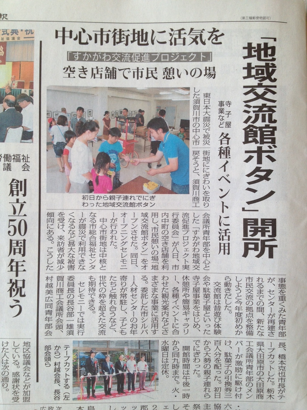 翌日の福島民報などにも地域交流館ボタンが写真付きで掲載されました。
